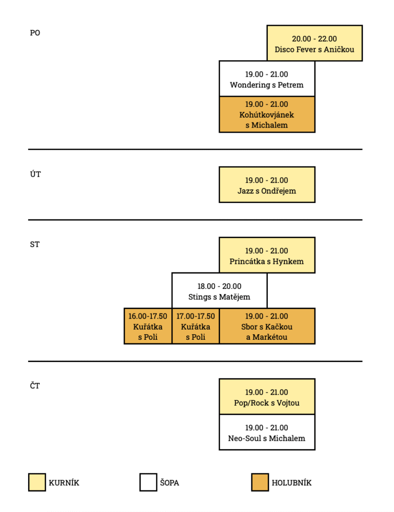 You will spend time with Kačka and Markéta. The girls will sensitively guide you through the initial confusion of who sings what, where, and how, until you stand on stage and confidently sing along with the others: "This is Halloween, this is Halloween, pumpkin scream in the dead of night..." Reading music is not a requirement, but it is a nice bonus. We will meet traditionally on Wednesdays at 7 p.m., with lessons lasting 2 hours. We look forward to seeing all of you strange creatures, both living and (semi)dead! See you in the moonlight...